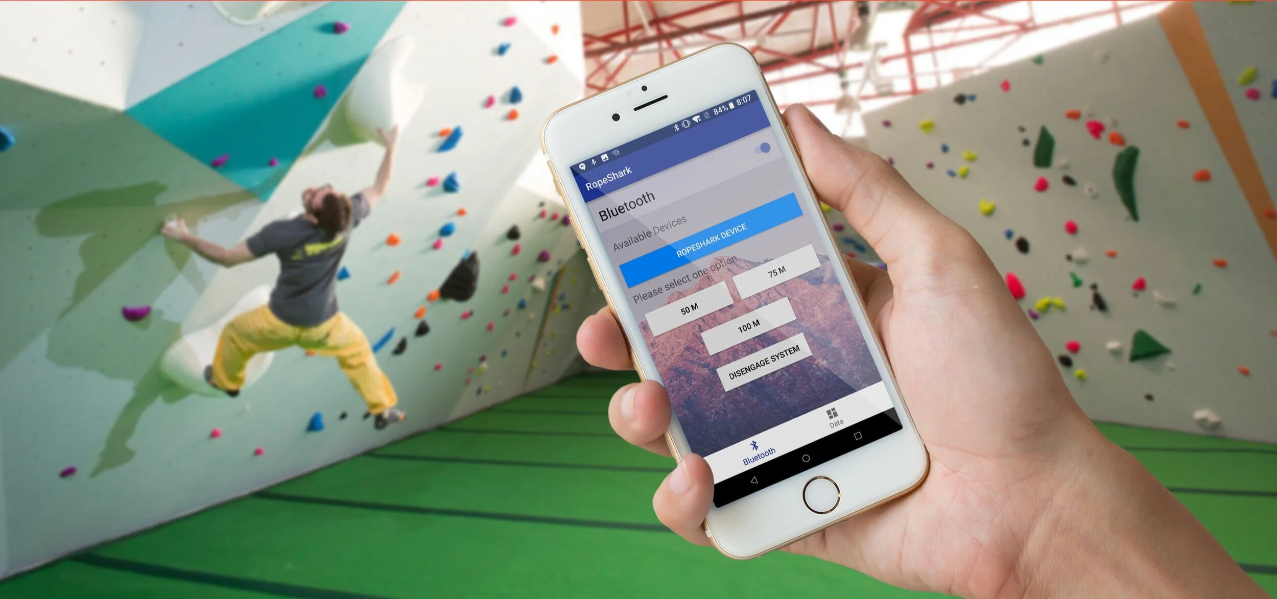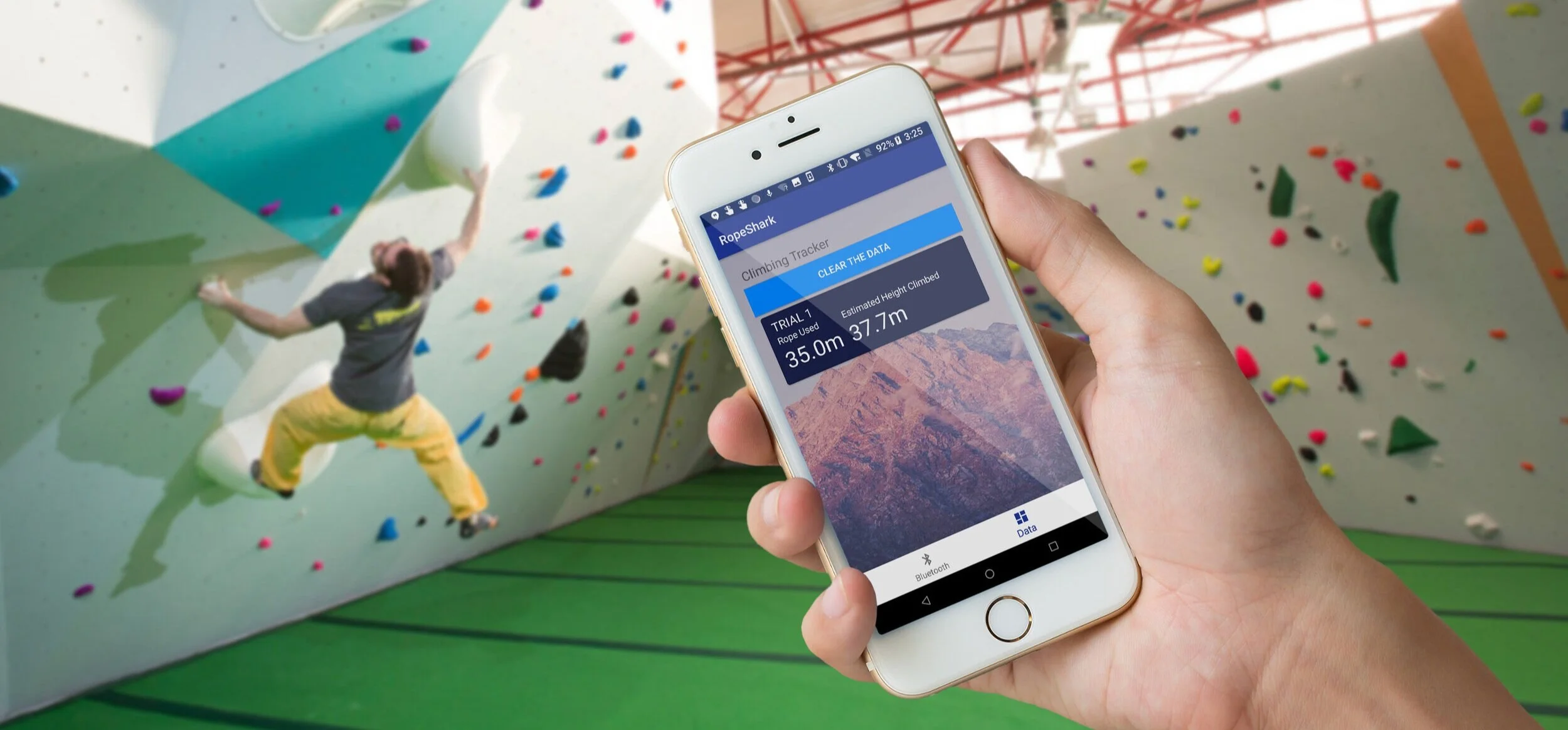 Ropeshark can be controlled through our app on Apple or Android devices. The app allows the user to coil climbing rope automatically, and even track climbing progress.